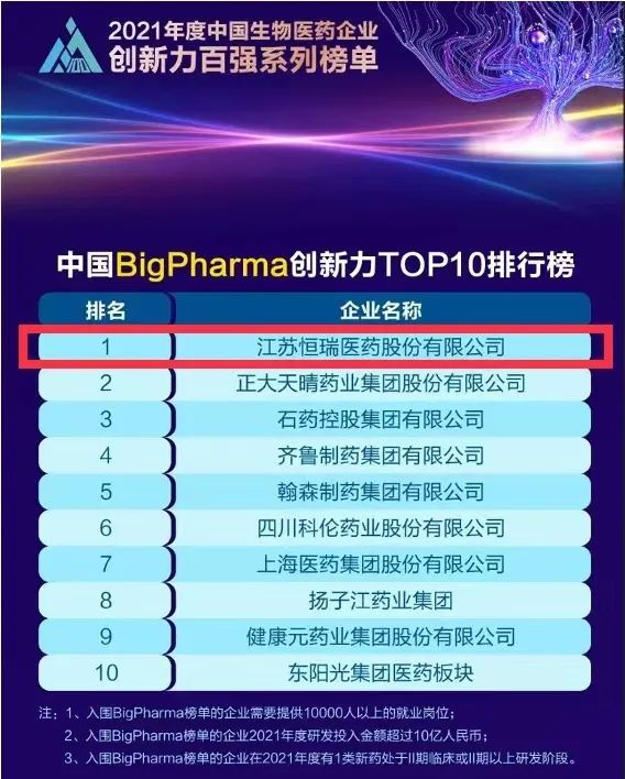 9月16日,由米内网主办的“2021年度中国生物医药企业创新力百强系列榜单”发布会在线上举办。尊龙凯时医药继去年登顶“中国BigPharma企业创新力TOP10排行榜”后,今年再次名列该榜单首位。